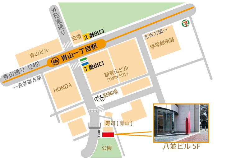 東京メトロ銀座線・都営大江戸線「青山一丁目駅」から3番出口から徒歩2分